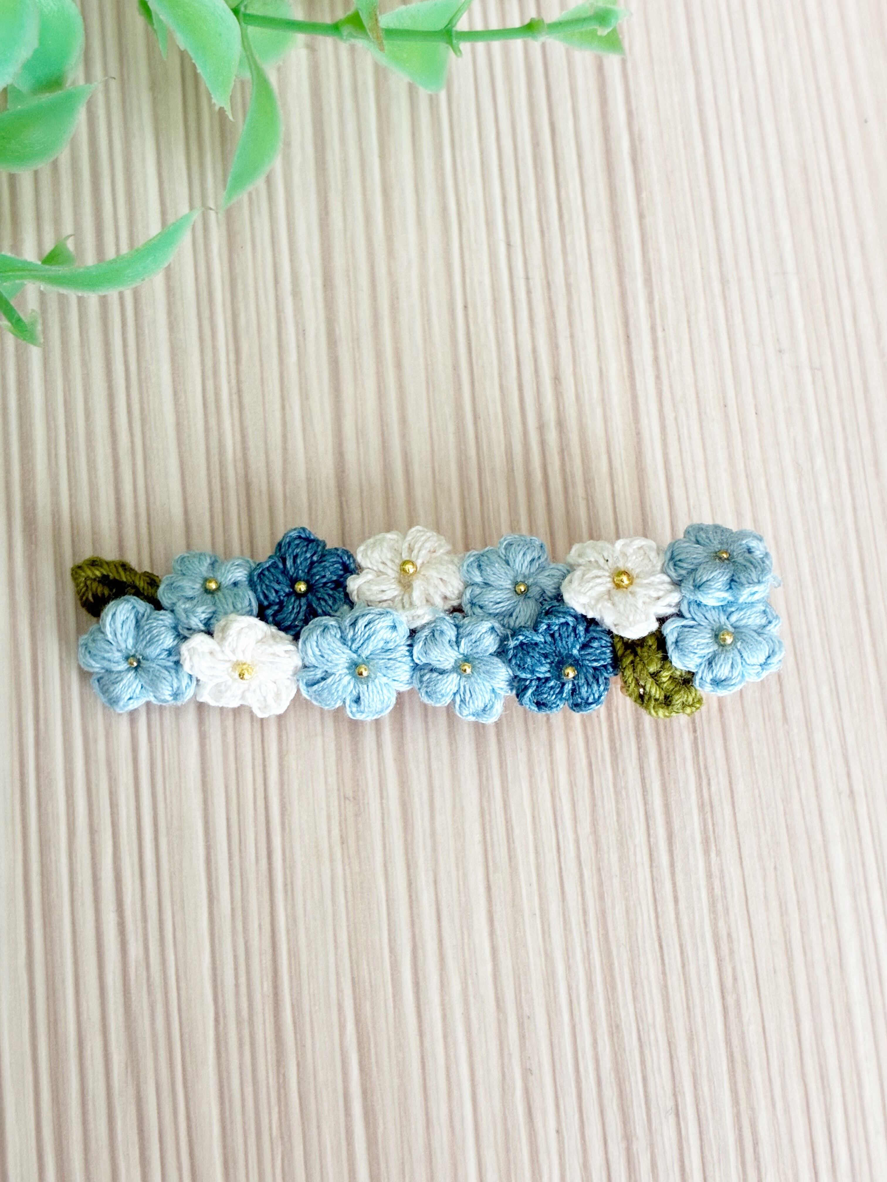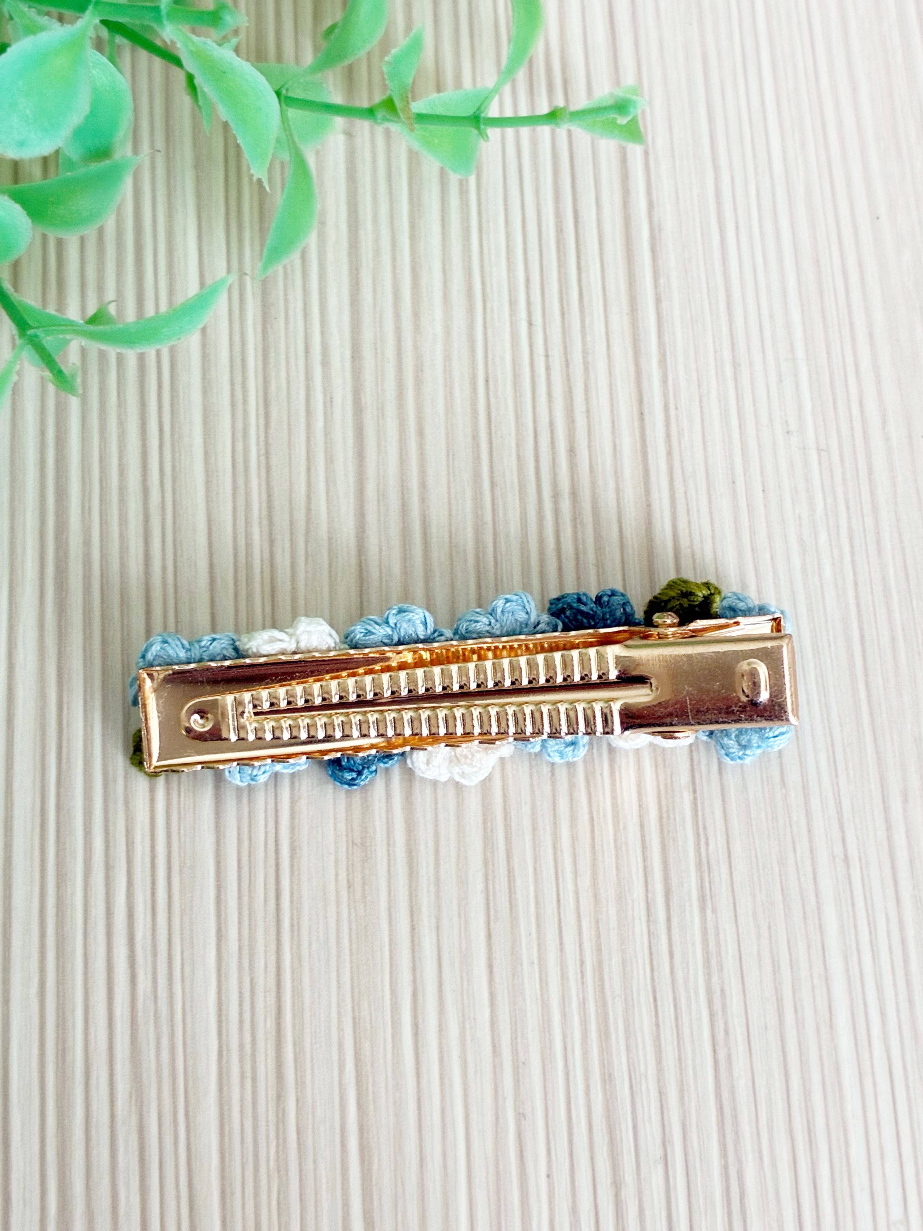 レース編み ヘアクリップ(ブルー系B)