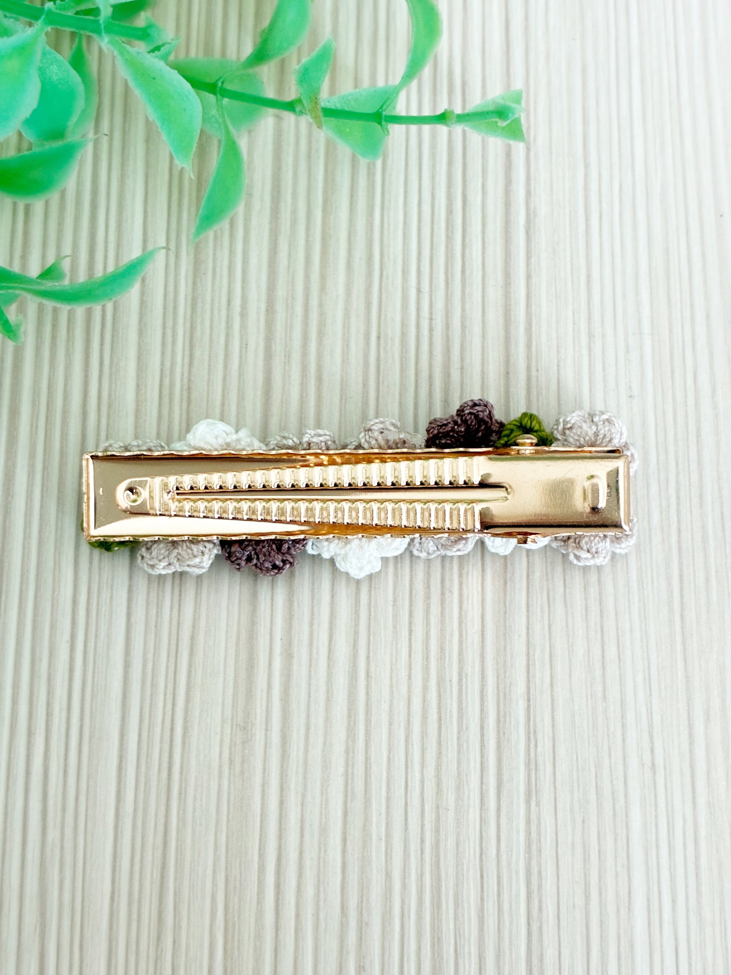 レース編み ヘアクリップ(チャコール系B)