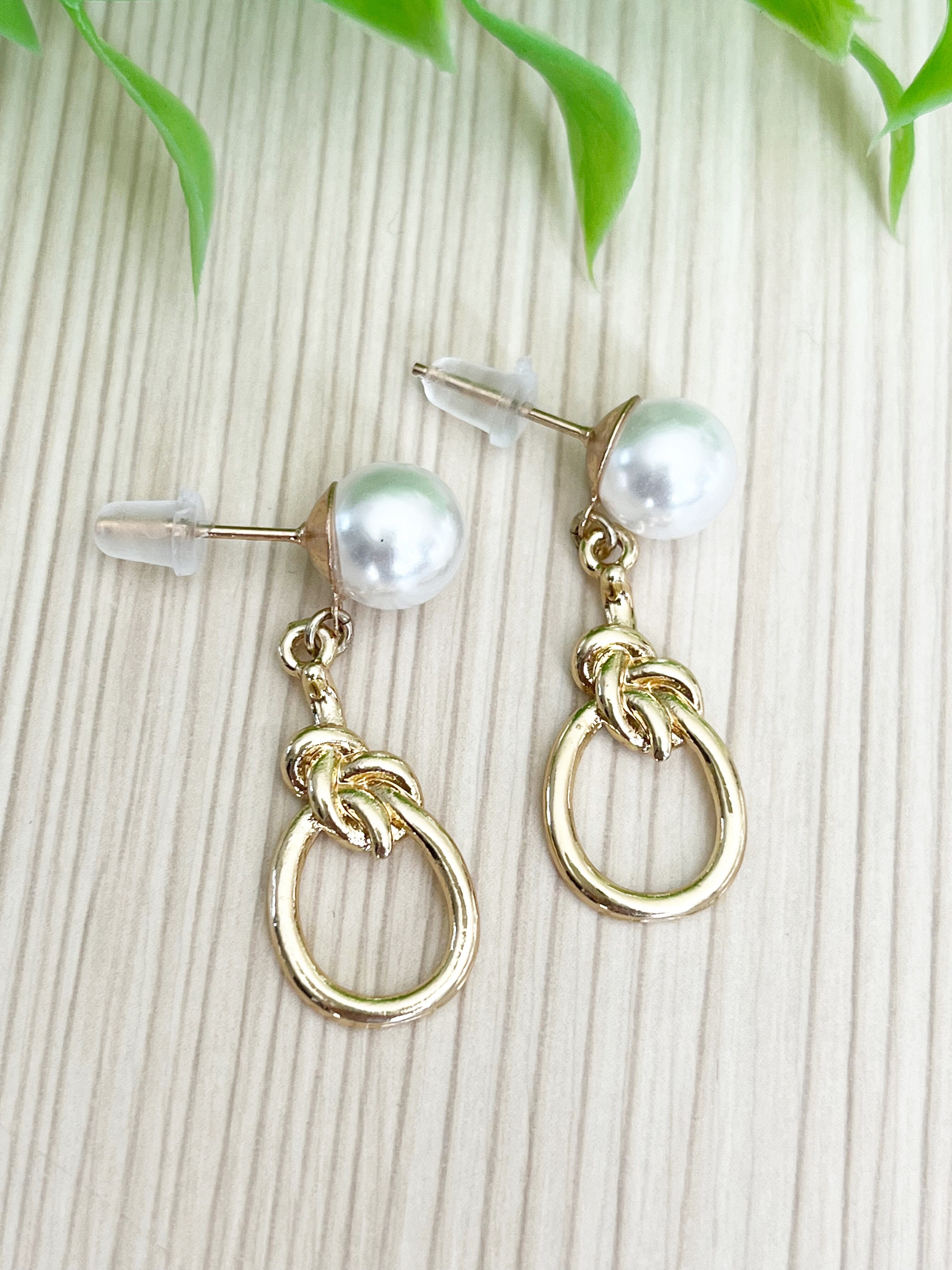 結びパール(8mm玉) ピアスのみ。